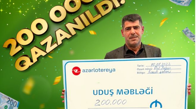“Azərlotereya” ASC-dən verilən məlumatda bildirlir ki, “40.000.000 Pul Yağışı” lotereyasında növbəti böyük uduş - 200.000 manat qazanılıb. Qeyd olunan ani lotereyada 200.000 manat məbləğində altı böyük uduş var və bunlardan artıq üçü öz şanslı qalibinə qismət olub. Əvvəlki iki uduş Ağcabədi və Ağdaş rayonlarında qeydə alınıb. 200.000 manat məbləğində növbəti üç böyük uduş və milyonlarla digər uduş öz şanslı qaliblərini gözləyir.