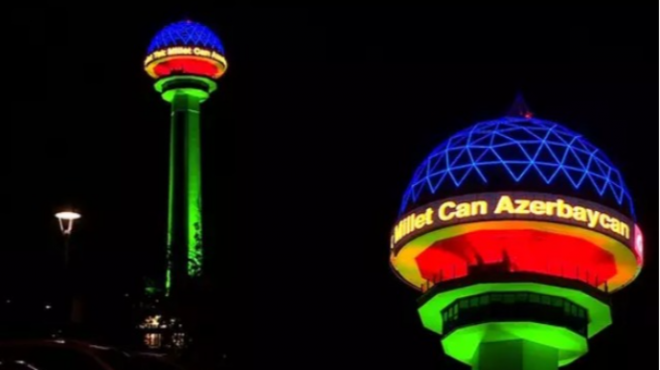Avtosfer.az xəbər verir ki, qüllənin üzərində Türkiyə və Azərbaycan bayraqları əks olunub, həmçinin türk və ingilis dillərində “Azərbaycan Müstəqillik Günün mübarək olsun” sözləri yazılıb.