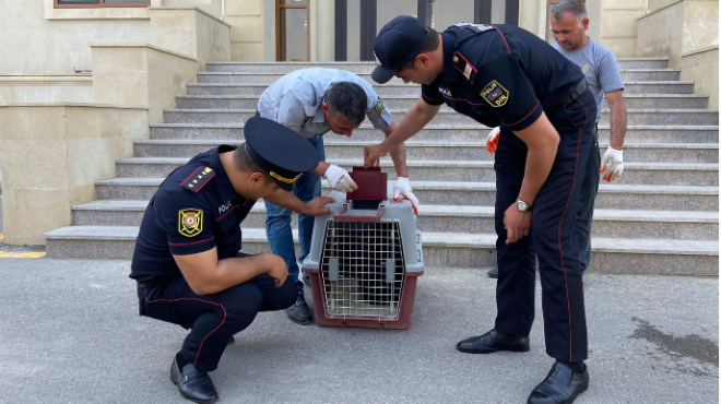 Sumqayıt şəhərinin Saray bağları ərazisində sakinlərin həyətinə daxil olan ayı balası Abşeron Rayon Polis İdarəsinin, Saray Polis bölməsinin əməkdaşları tərəfindən götürülərək Ekologiya və Təbii Sərvətlər Nazirliyinin əməkdaşlarına təhvil verilib.