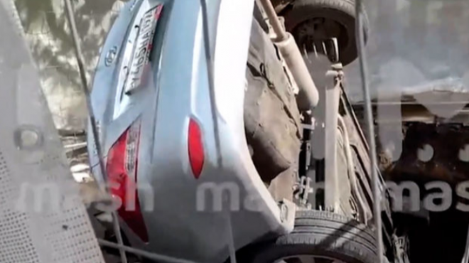 Moskvanın Timiryazevskaya küçəsində avtomobil çuxura düşüb.