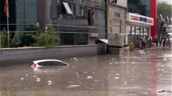 Türkiyənin paytaxtı Ankarada güclü yağış nəticəsində küçələri su basıb.