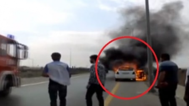 Bakının mərkəzində minik avtomobili yandı