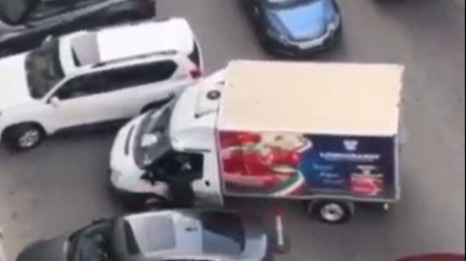 Avtosfer.az xəbər verir ki, bu barədə görüntülər sosial şəbəkələrdə paylaşılıb. Görüntülərdə firmaya məxsus yük avtomobilinin parkedildiyi əks olunur. Lakin bu zaman əraziyə nəzarət edən şəxs avtomobilin qarşısını kəsərək, park edilməsinə imkan vermir. Daha sonra isə əlindəki dəyənəklə sürücüyə hücum edir. Hadisə anını təqdim edirik: